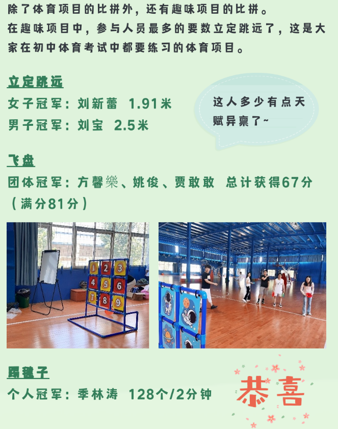 本次運動會在歡樂的氛圍中激發(fā)了大家的潛力,發(fā)現(xiàn)了大家不為人知的潛在技能,讓大家實實在在感受到了團(tuán)隊的力量,在一聲聲加油中,挑戰(zhàn)自我極限!